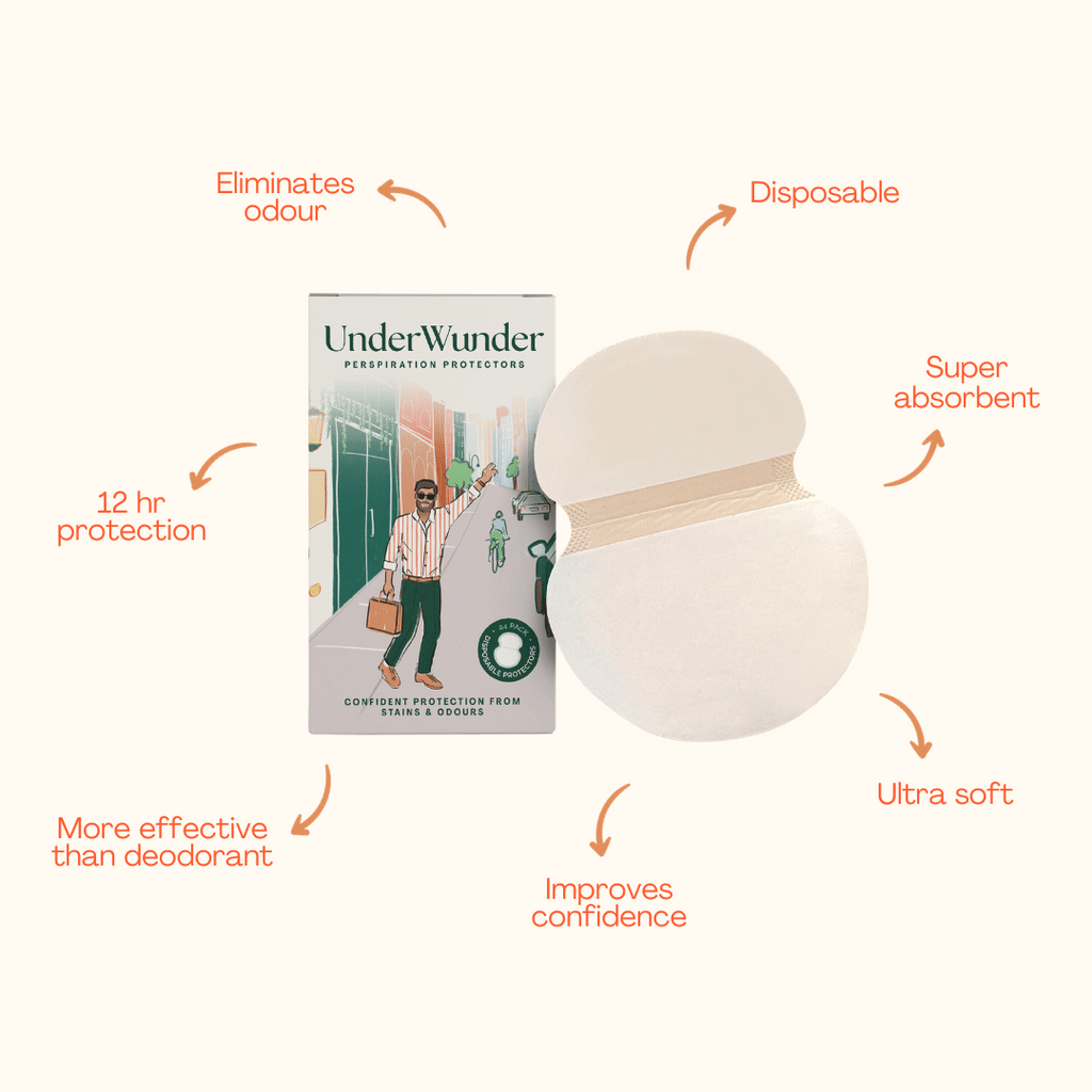 I live Washington, DC where the summer is brutally hot and humid. I also work in politics, so I have to wear blazers over sleeveless dresses and tops. Before UnderWunder, I had to dry clean my blazers after every wear. When that didnβt get the smell out of the armpits, I started washing them. The blazers would shrink and never looked the same. UnderWunder has saved me so much time, money, and stress. I can wear blazers multiple times between dry cleanings, since the underarms are protected from smells. I never have to worry about sweat stains on my shirts, bodysuits, and dresses. Most importantly, I can preserve the look and longevity of my clothes by not having to launder fabrics that really shouldnβt be washed. I keep extra UnderWunder in my purse just in case they unstick or bunch if I take off my blazer, but otherwise, theyβre nearly perfect.